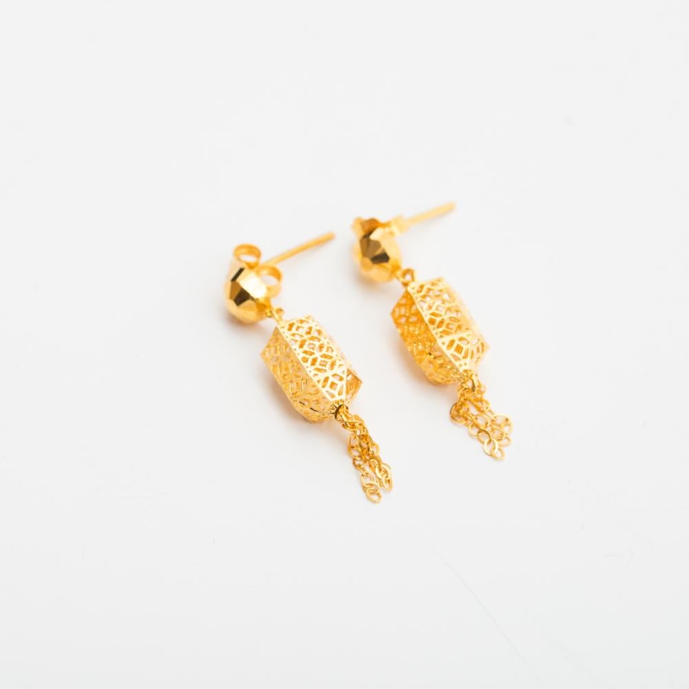 ✨ حلق ذهب بتصميم فانوس عيار 21 - تصميم تراثي مستوحى من الفوانيس الرمضانية