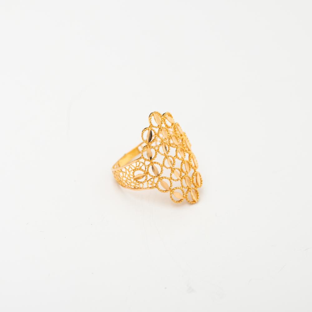 خاتم ذهب مزخرف أنيق عيار 21 بتصميم فاخر يجمع بين الأناقة والتفاصيل الدقيقة. قطعة فريدة تضيف لمسة فخامة ورقي لإطلالتك في جميع المناسبات.
