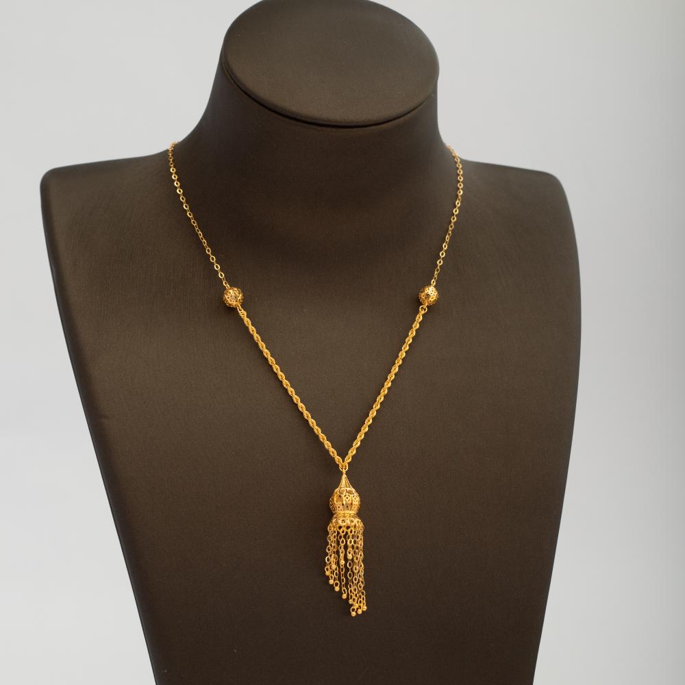 تألّقي بتصميم فاخر وأنيق مع عقد الهبة الفانوس المصنوع من ذهب نقي عيار 21 بوزن 3.53 جرام. قطعة مستوحاة من جمال الفانوس التراثي، تجمع بين الفخامة واللمسة الكلاسيكية لتكون خيارك المثالي.