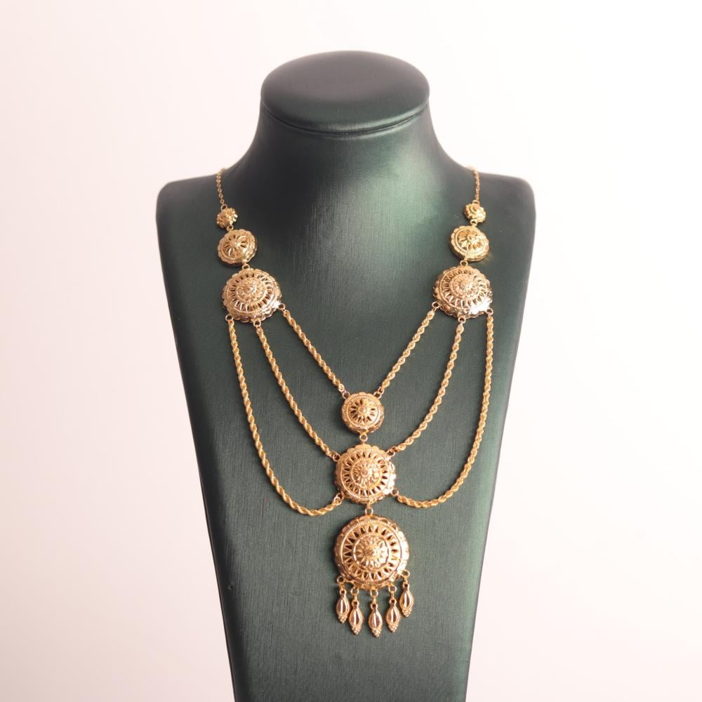 ✨ عقد كرسي جابر فاخر من مجوهرات زهرتي يجمع بين عراقة التصميم الكلاسيكي واللمسة البراقة للذهب الصافي. إنه الخيار الأمثل للمناسبات الكبرى والاحتفالات التي تتطلب تألقاً فاخراً ومظهراً لا يُنسى.